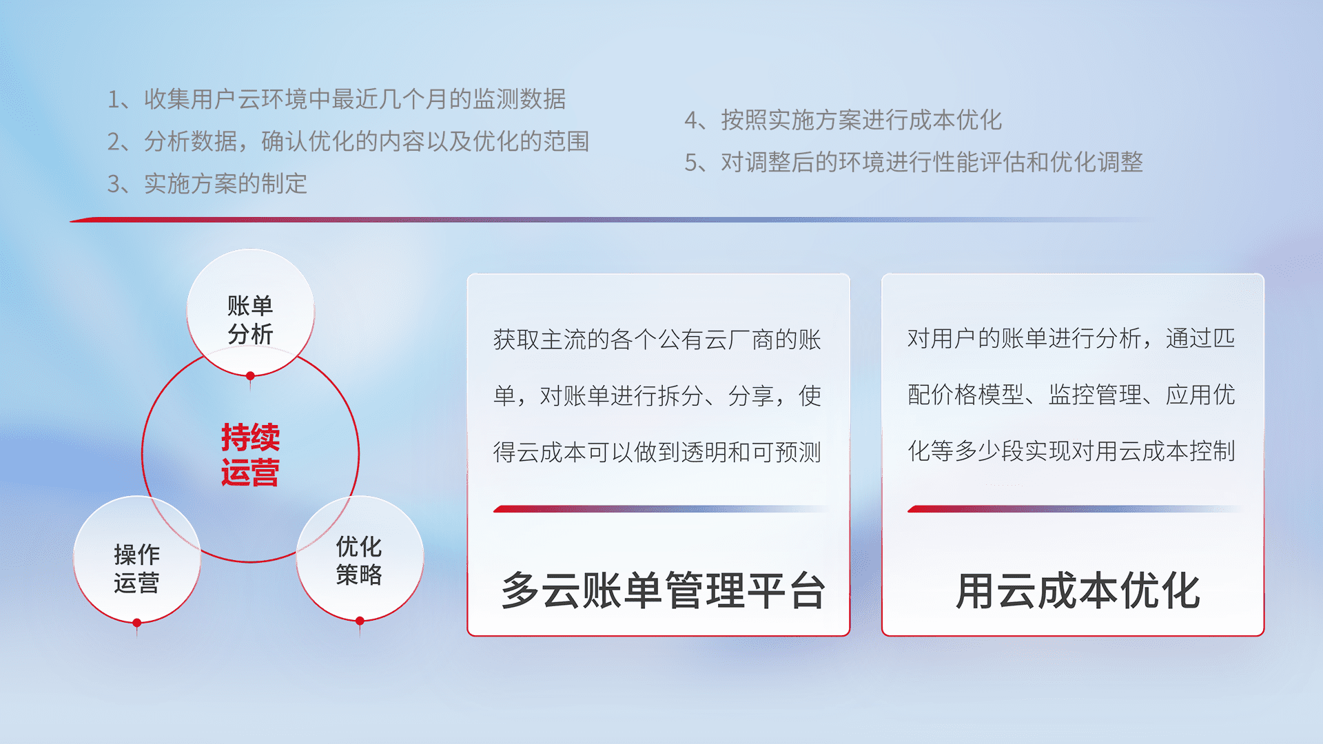 监控业务系统资源开销,,对资源的消耗精确计量,,,实现费用的透明化管理,,,不断提升资源使用率,,,调整资源购买方式,,,,降低资源费用成本,,,用云成本可预测、、、、用云费用可优化,,云资源配额有据可依。。